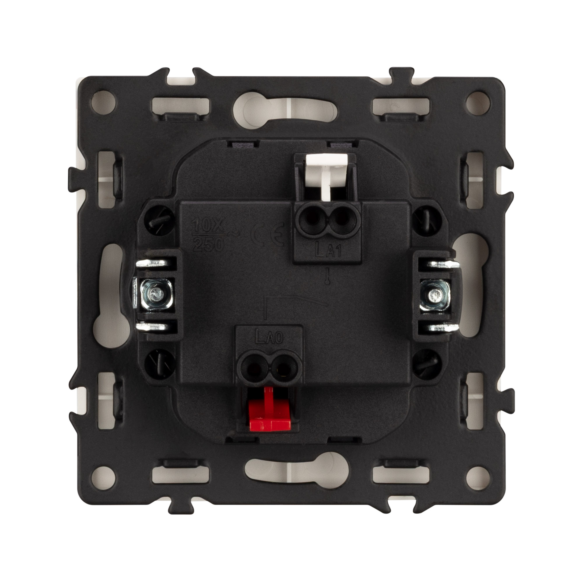 Строгие геометрические линии гармонично сочетаются с функциональностью продуманных механизмов, создавая идеальное решение для дизайн-проектов, где важны как эстетика, так и практичность. Механизм выключателя света совместим с рамками серии NOBE, создает утонченный минималистичный вид. Скрытый тип монтажа позволяет гармонично встроить в интерьер любого современного дизайн-проекта. Видимая часть механизма выполнена из высококачественного пластика белого цвета и имеет Soft-Touch покрытие, что придает изделию приятные тактильные ощущения и стильный внешний вид. Соединение посредством быстрозажимных контактов, позволяет надежно подсоединить механизм выключателя к питающим элементам, минимизируя затраченное время на монтаж. А усиленные распорные лапки двойного захвата надежно фиксируют механизм в установочном подрозетнике круглого сечения диаметром 60мм. Суппорт окрашен в черный матовый цвет под основу механизма и выполнен из металла толщиной 1,5мм, что обеспечивает безопасность и уверенность в установке. На каждой стороне суппорта размещены фиксирующие элементы, позволяющие комбинировать механизмы в системы до 5 шт как горизонтально, так и вертикально.