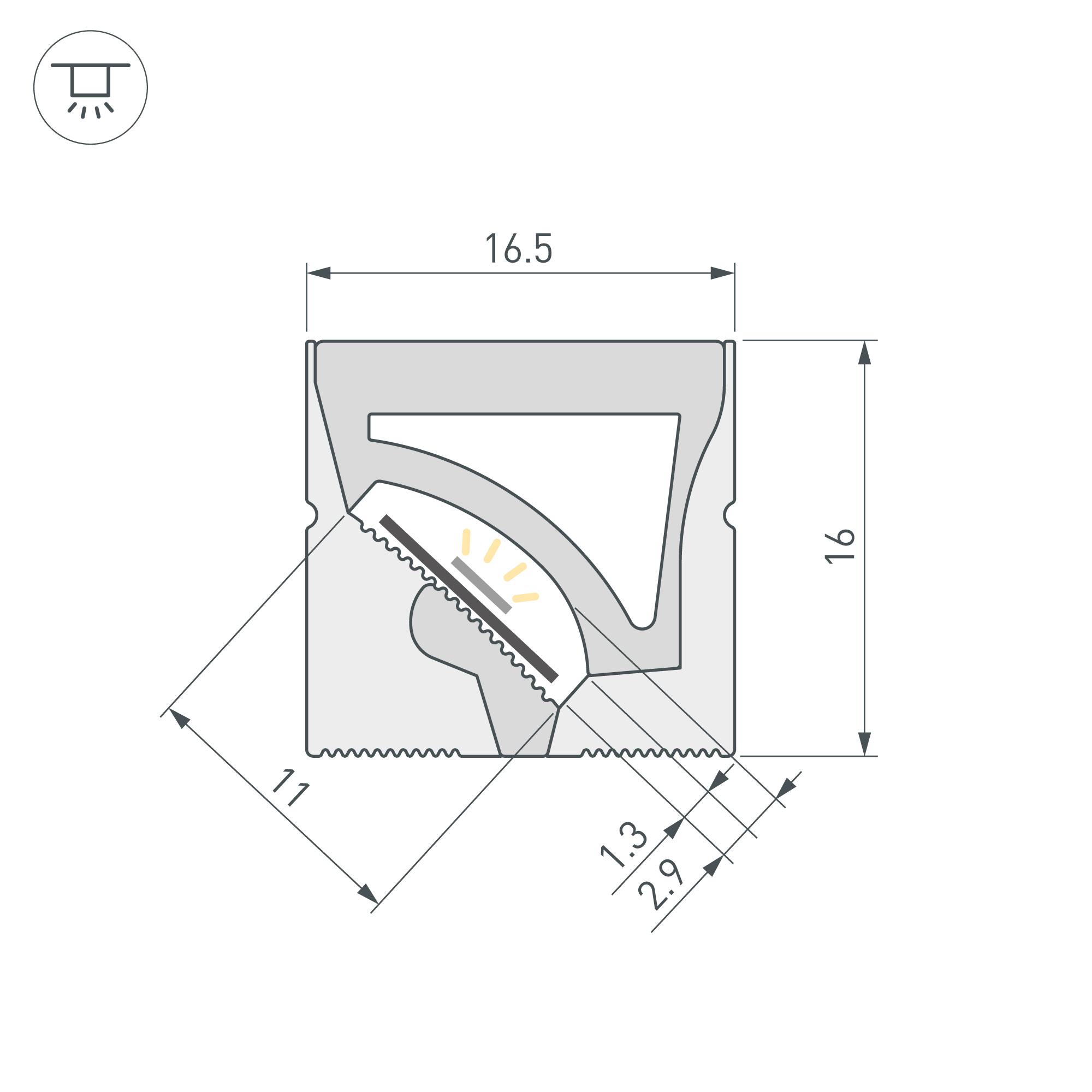 Цельнолитой силиконовый гибкий профиль белого цвета с УФ-защитой. Габаритные размеры профиля составляют 10000 мм в длину, 16 мм в ширину и 16 мм в высоту. Возможен изгиб как в вертикальной, так и в горизонтальной плоскости, а также изготовление скрученных форм TWIST. Вертикальный изгиб TOP, минимальный радиус изгиба 50 мм. Горизонтальный изгиб SIDE, минимальный радиус изгиба 200 мм. Угол излучения 115°. Для удобства установки ленты по всей длине профиля протянута нить. Площадка для установки светодиодных лент позволяет использовать ленту шириной 10 мм, высотой до 2,8 мм и мощностью до 10 Вт/м. Это обеспечивает гибкость в выборе светодиодных лент и создает потрясающие световые решения. Для установки во влажных помещениях необходима герметизация при помощи двухкомпонентного эпоксидного герметика. Класс пылевлагозащиты – IP65 (при соблюдении технологии герметизации). Этот продукт представляет отличное решение для создания современных световых проектов и обеспечивает надежную и стильную основу для установки светодиодов. Для накладного монтажа на 1 метр профиля рекомендуем использовать не менее 3-х держателей.